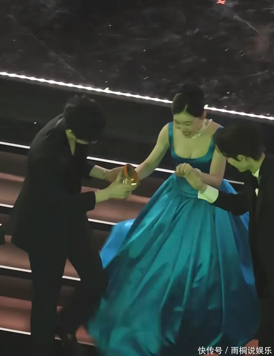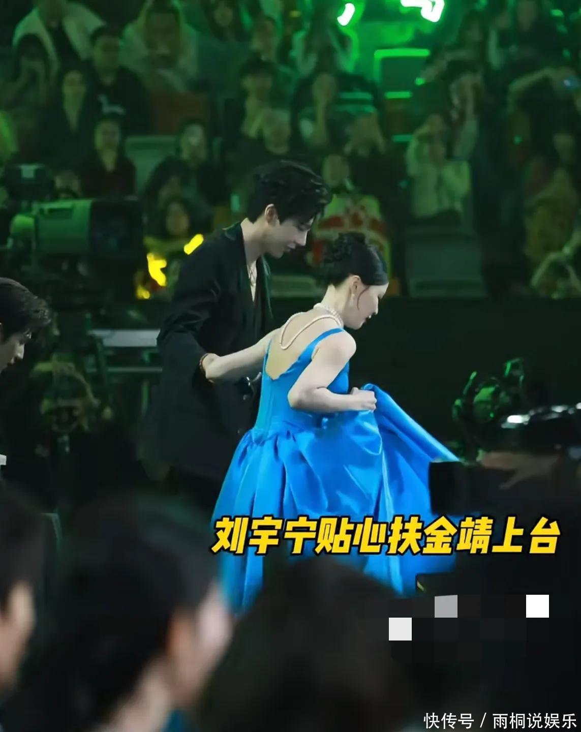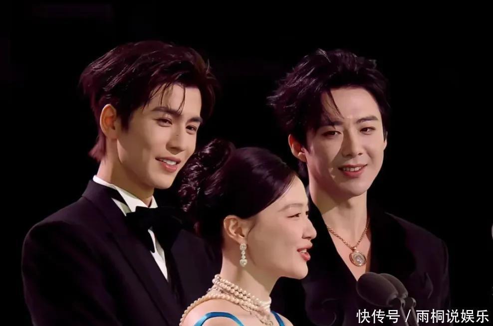 内场领奖环节,金靖上台下台也都有张凌赫和刘宇宁这两个左右护法。